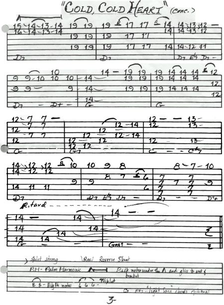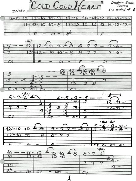 ABOVE: "Cold, Cold, Heart" tabbed by Jerry's for his intriguing Diatonic tuning