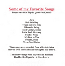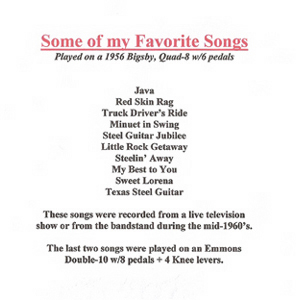 Seven of this fine collection of instrumentals were written by Jerry, especially for this album, and steel guitar fans will be surprised to find that all but three are played in the old E7th tuning, (Chet was in error here, the tuning was E9th-(JB I changed E7th ) a new experiment and a new sound for Jerry Byrd.